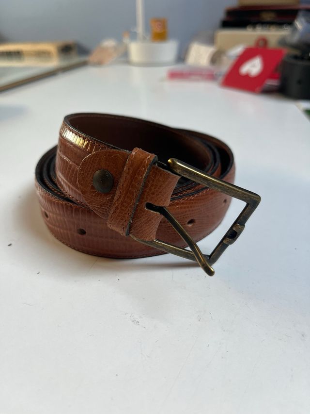 Cintura pelle marrone effetto lucertola