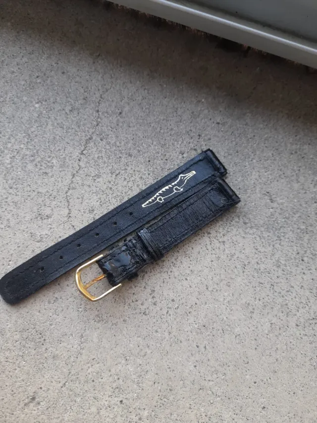 Cinturino vintage coccodrillo nero fibbia oro
