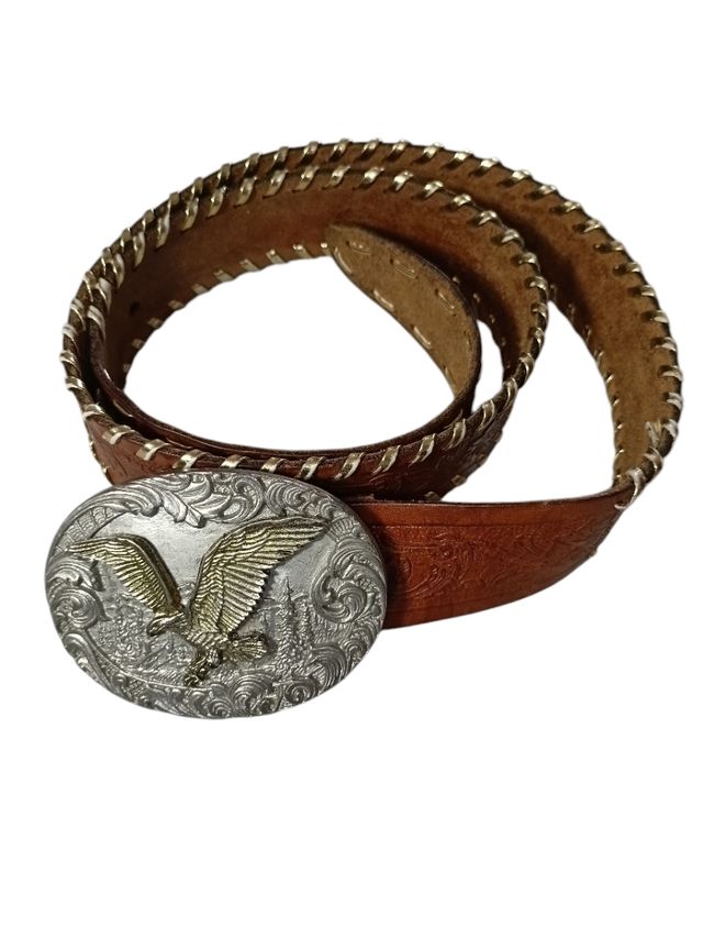 Cinturone Messicano Pelle Marrone Fibbia Aquila or