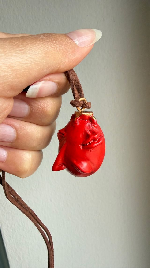 Dettagli del prodottoReplica artigianale del ciondolo Behelit dall'anime/manga Berserk. Un pezzo unico per i fan.