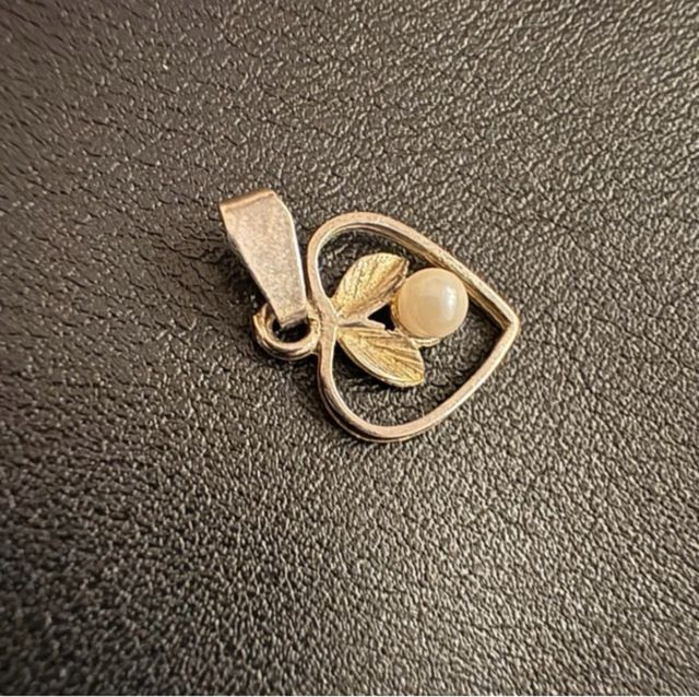 Ciondolo cuore con perla e foglia