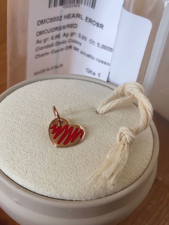 Ciondolo Dodo Cuore Oro Rosa Smalto Rosso