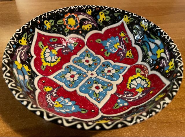 Dettagli del prodottoBellissima ciotola in ceramica, decorata a mano con motivi floreali vivaci.