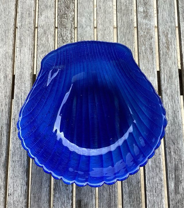 Ciotola di vetro blu cobalto a forma di conchiglia