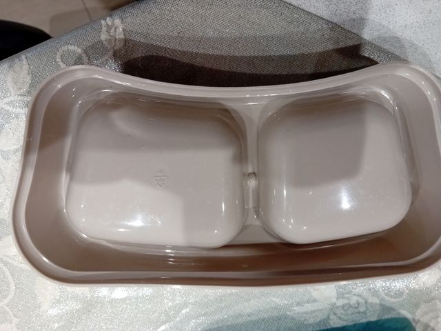 Dettagli del prodottoVendo ciotola per cuccioli, in plastica color beige. È composta da due ciotole unite. Ideale per cibo e acqua.