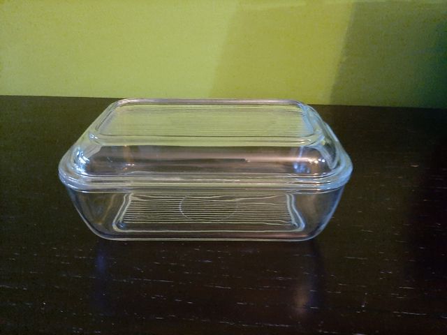 Ciotola rettangolare in vetro "Arcoroc France" con coperchio. Dimensioni: 10x 16 cm ca.