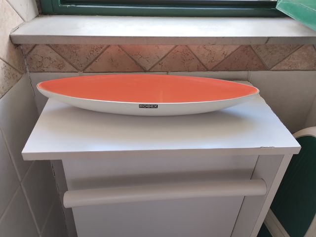 Usata ma ancora in ottime condizioni generali, internamente ha una striatura ma mettendo gli oggetti dentro non si nota. La lunghezza è cm. 41 circa.