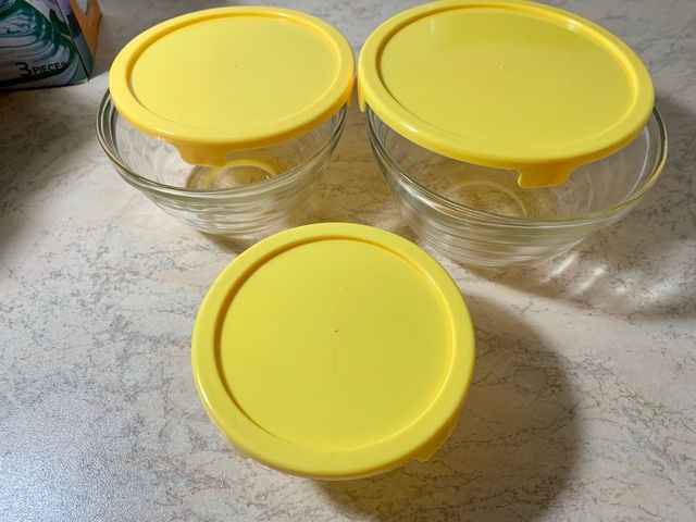 3 Ciotole ermetiche in vetro con tappo in plastica, misure grande media e piccola