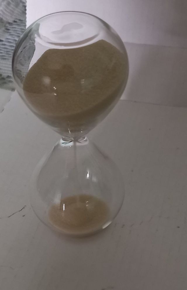 Bellissima clessidra classica in vetro con sabbia beige, della durata di 3 minuti, ideale nei giochi o nelle discussioni. Altezza circa 8 cm.
