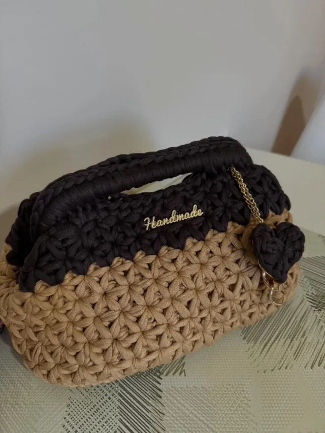 Borsa fatta a mano beige e marrone