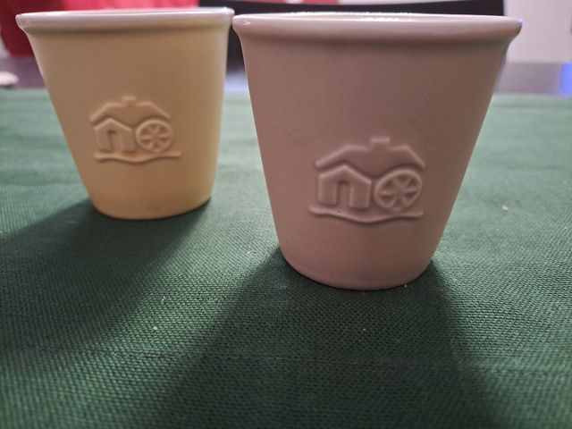 Set 2 coccini Mulino Bianco, uno giallo, uno tortora. Dimensioni come tazzine caffé.