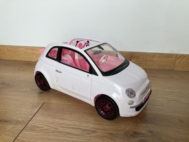 Dettagli del prodottoBellissima auto Barbie, una Fiat 500 convertibile in bianco con dettagli rosa. È in buone condizioni, anche se presenta alcuni lievi segni d'uso e mancano gli specchietti retrovisori