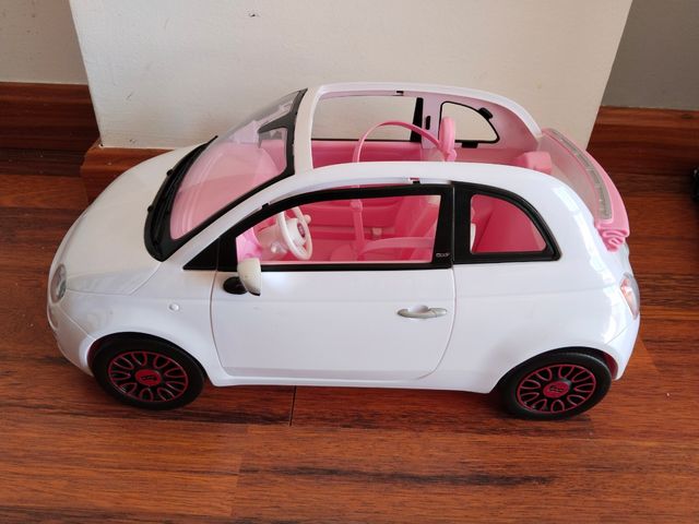 Dettagli del prodottoQuesta auto Barbie è una Fiat 500 convertibile in bianco con dettagli interni rosa.