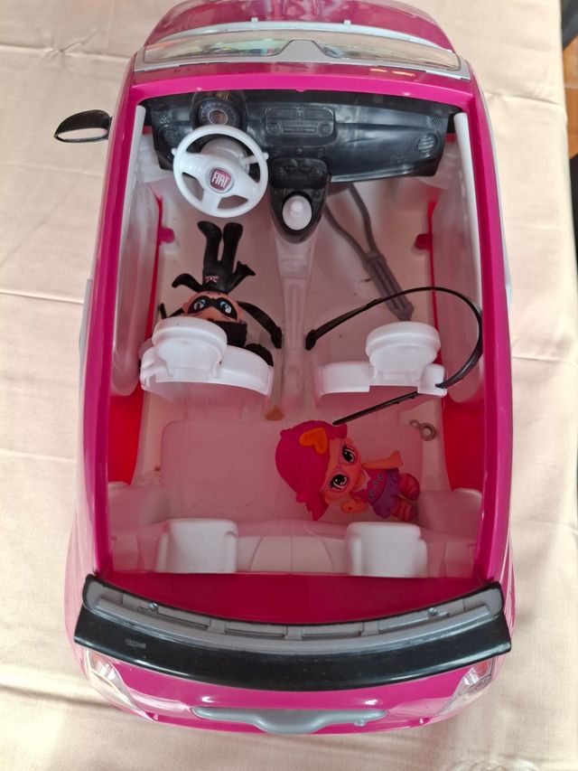 Dettagli del prodottoBellissima macchinina Barbie, con design Fiat 500. È di colore rosa e presenta dettagli bianchi. Include due piccoli polsi. Perfetto per giocare. - Fiat 500 design