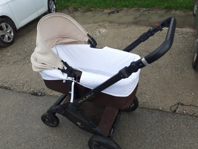 Dettagli del prodottoPasseggino per neonati MUVIM in marrone e beige. Include ovetto. - Ovetto con interno bianco imbottito. - Tetto beige. - Telaio nero. - Ruote nere. La descrizione è stata tradotta automaticamente.
