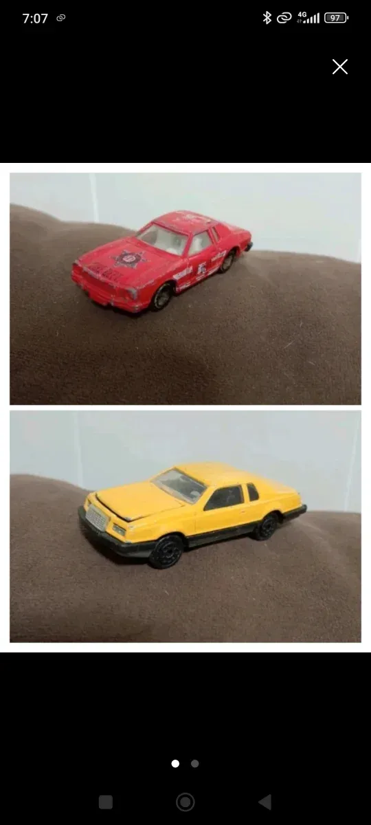 Dettagli del prodottoDue vecchie macchinine, una rossa e una gialla. Ideale per i collezionisti