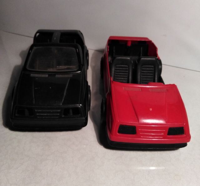 Dettagli del prodottoCoppia di macchinine giocattolo in plastica del marchio Gozan. Sono rosse e nere.
