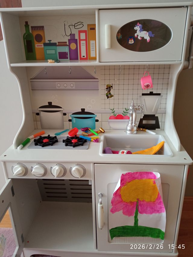 Dettagli del prodottoDivertente cucina in legno per i più piccoli per giocare a fare gli chef. Ideale per stimolare l'immaginazione. Design della cucina con forno, fornelli e lavandino. Include accessori come pentole e utensili. Porta del forno ribaltabile. La descrizione è stata tradotta automaticamente.