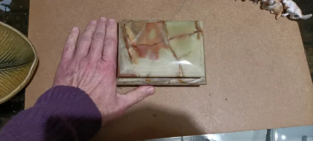 Dettagli del prodottoElegante cofanetto vintage realizzato in onice, risalente agli anni '70.