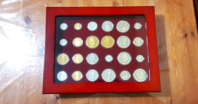 Dettagli del prodottoFabrica Nacional de moneda y timbre è un'emissione di repliche delle 24 monete in argento e oro che compongono la storia della peseta. Monete in argento massiccio, le monete che si vedono in oro, hanno un bagno d'oro a 24 carati. Tutti i pezzi in argento 925 millesimi e 7 di esse ricoperte d'oro a 24 carati. Certificato di autenticità Fabrica. Nacional de moneda y timbre. Real Casa de la Moneda. Conservazione proof, incapsulate. Ho questa collezione disponibile come si vede nelle foto in vetrina di legno. La descrizione è stata tradotta automaticamente.