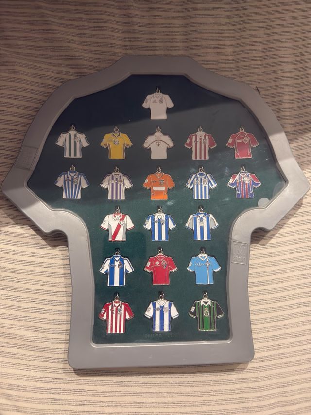 Dettagli del prodottoCollezione di portachiavi a forma di maglie di calcio della Prima Divisione. Include 16 portachiavi con design vari di squadre. La descrizione è stata tradotta automaticamente.