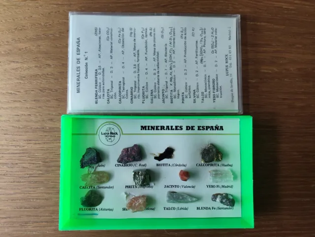 Dettagli del prodottoTre scatole di Minerali di Spagna. Lupus Rock (Minerali), anni '90. Due delle scatole sono complete con descrizione e coperchio, anche se alcune delle parti sono staccate. La terza scatola non ha coperchio, descrizione e manca una parte. Collezione n. 1: Galena, Cinnabarite, Biotite, Chalcopyrite, Calcite, Pyrite, Hyacinth, Gypsum Fi, Fluorite, Sylvite, Talc, Iron Blende. Collezione n. 2: Marcasite, Orthoclase, Carton, Magnetite, Jasper, Fluorite Oct., Manganese Blende, Disthene, Rose Quartz, Vonsenite, Gypsum Esp., Siderite. La descrizione è stata tradotta automaticamente.