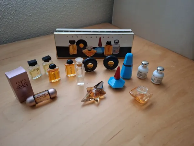 Dettagli del prodottoSet di miniature di profumi per collezionisti. Varietà di fragranze in formato piccolo. - 14 Bottiglie di vetro. - Tappi di diversi colori e forme. - Include scatola espositiva. La descrizione è stata tradotta automaticamente.