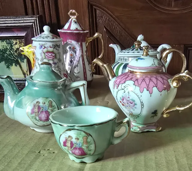 Collezione di piccole teiere decorate
