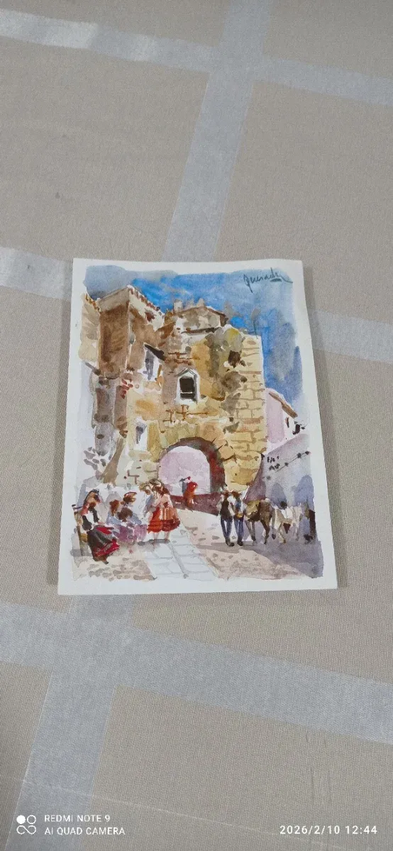 Dettagli del prodottoCartolina postale antica da collezione. Illustrazione di una scena di costume con architettura. Firma dell'artista Jimada in alto a destra. Rappresentazione di figure umane e animali. La descrizione è stata tradotta automaticamente.