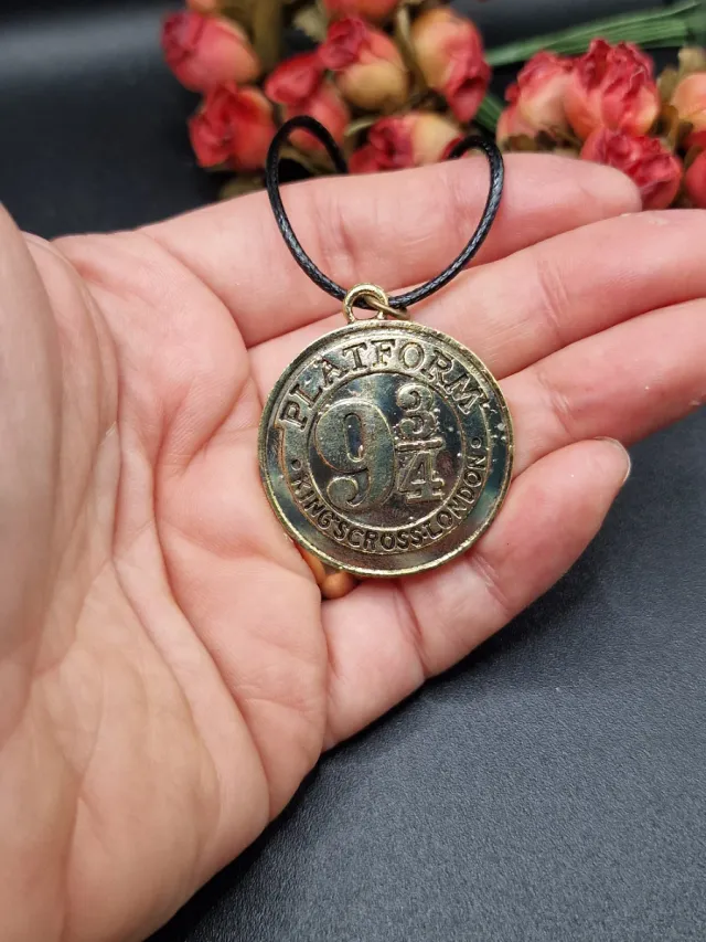 Dettagli del prodottoCollana ispirata al mondo di Harry Potter, con il simbolo del Binario 9 ¾ in metallo color oro, con catena in caucciù/simil pelle.