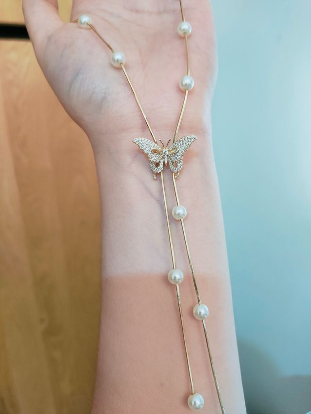 Collana con farfalla e perle con scatolina