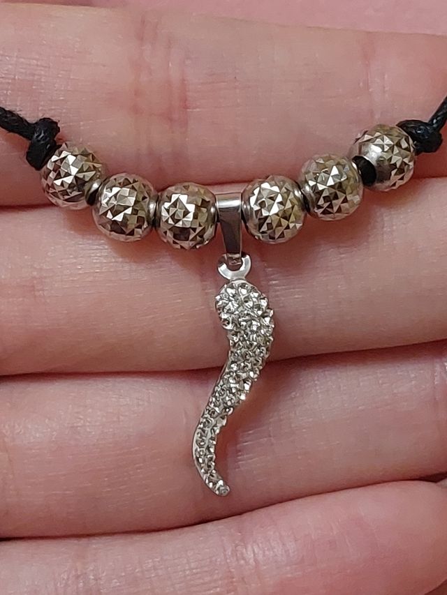 Collana cornetto oro bianco con strass