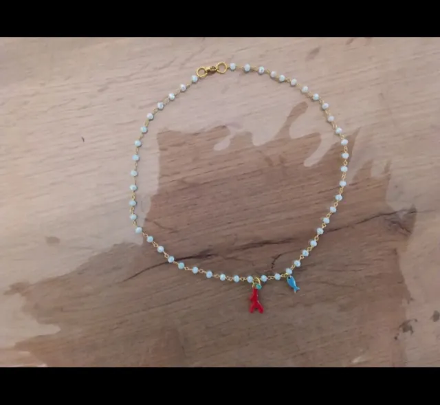 Collana cristalli turchesi, pesciolino e corallo