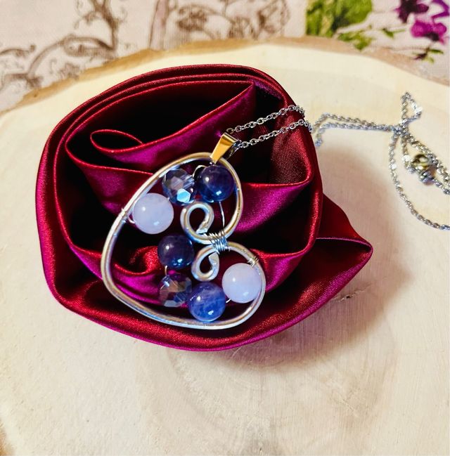 Collana cuore con ametiste e quarzo rosa