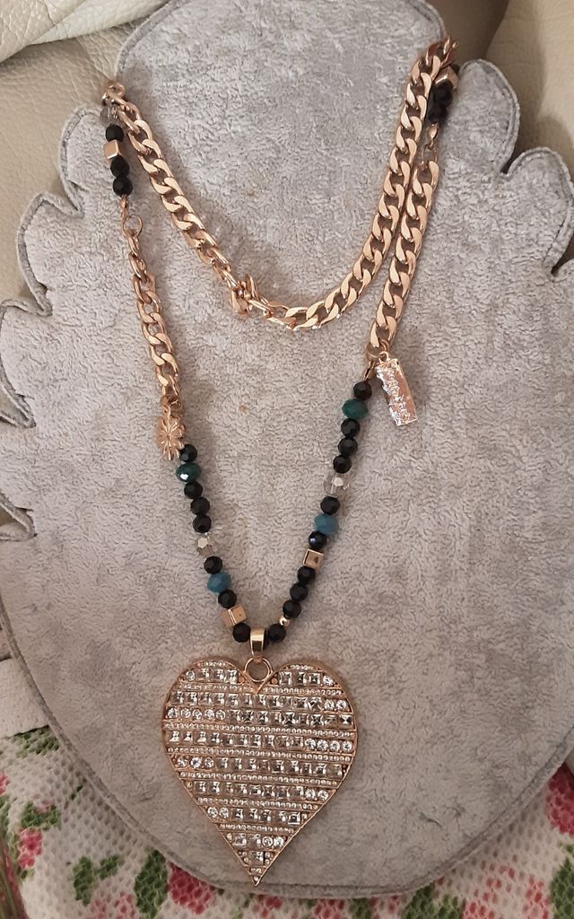 Collana cuore strass oro | bijoux