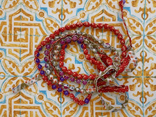 Collana doppio filo perle e tessuto