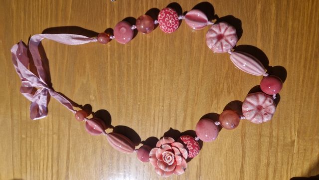 Collana floreale rosa in pietre e resina