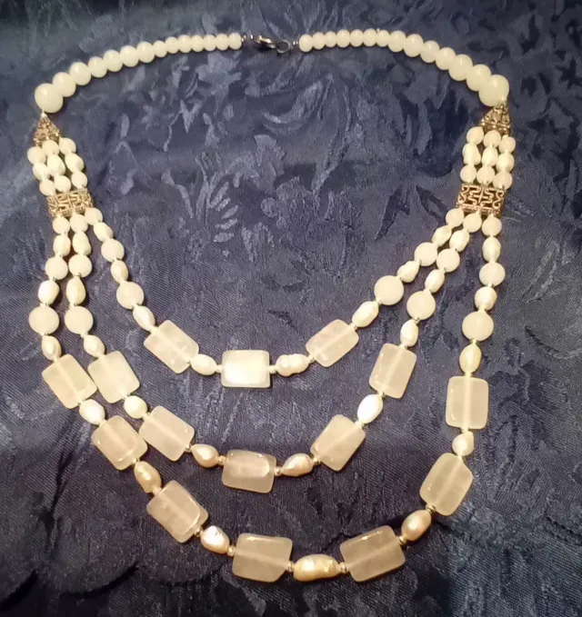 Collana girocollo 3 fili perle e inserti argentati