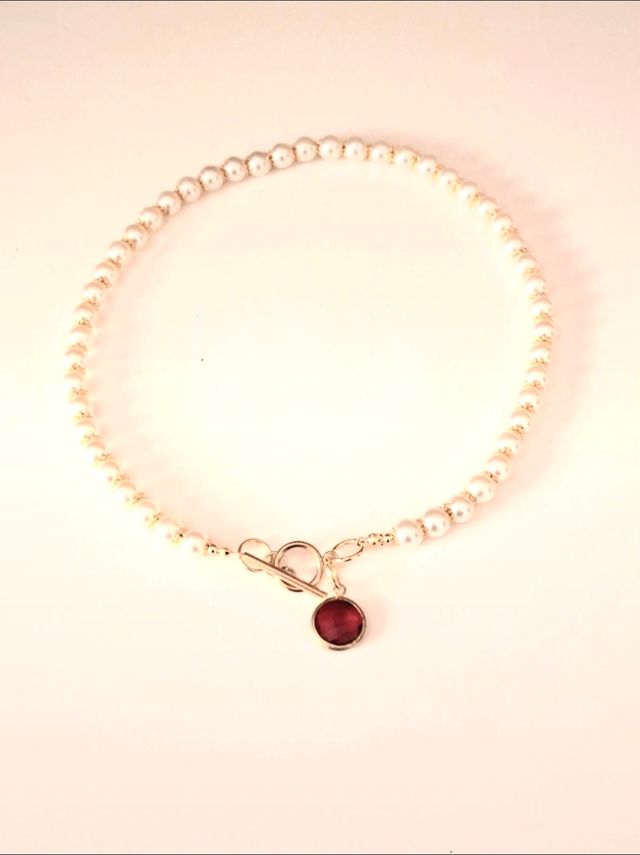 Collana perle e zircone rosso