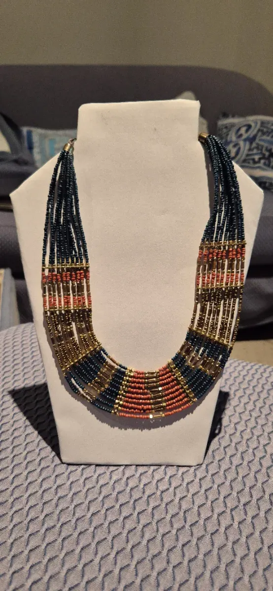 Collana perline blu e oro