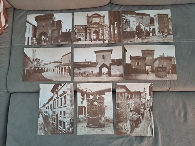 Collezione di 9 cartoline informative dedicate alla storia di Bologna, emesse dall’istituto finanziario Cassa di Risparmio in Bologna (CARISBO).