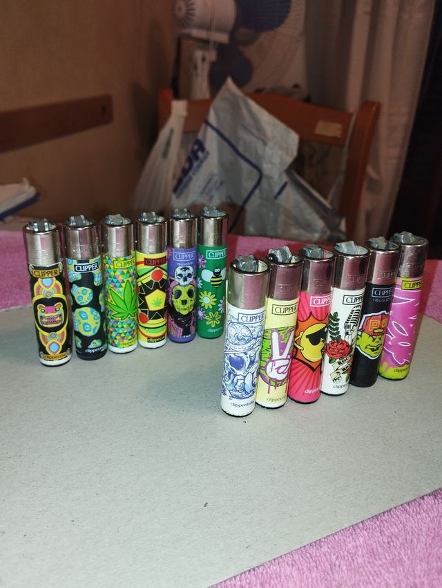 Vendo collezione di 12 accendini Clipper con diverse fantasie. - Accendini Clipper originali. - Vari disegni colorati e a tema. - Ideali per collezionisti.