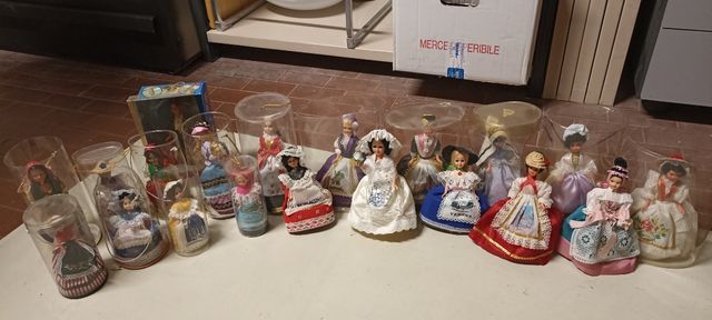 bamboline anni 60 . alcune hanno le palpebre che si muovono . con vestiti folcloristici di varie città.