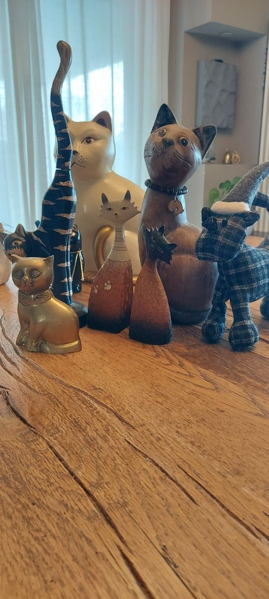 Dettagli del prodottototale 20 pezzi di decorazione a forma di gatto. alcuni acquistati durante i viaggi, alcuni regalati. vari materiali prevalentemente ceramica e legno. varie dimensioni. uno è un abatjour funzionante. vendo in caso anche separatamente, potete contattarmi