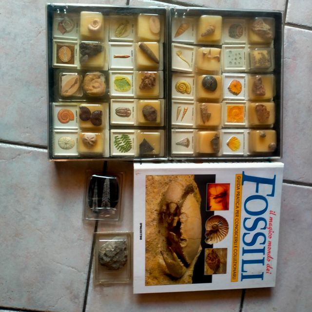 Dettagli del prodottoVendo una collezione intera di fossili che consiste in2espositori con10fossili ciascuno all internoe un libro con relative schede su ogni fossile presente,in+ho aggiunto altri fossili sfusi molto belli come vedrete in foto e sono altri7fossili in più.il prezzo è 50€ totali ma è irrisorio calcolando quanto è il materiale. Misure del prodotto
