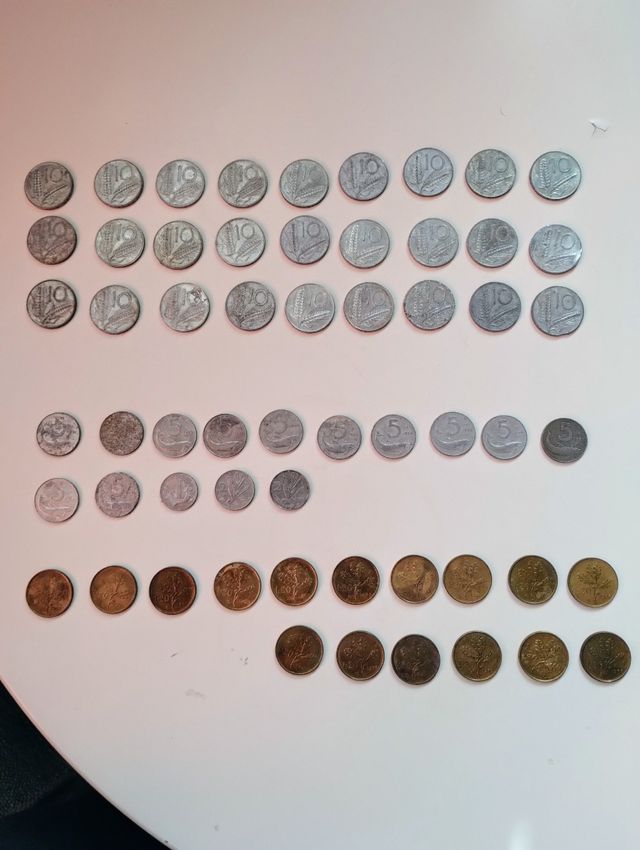 Dettagli del prodottoCollezione Monete da 5, 10 e 20 Lire - 44 pezzi pezzi come da foto. Cedo a 25 euro. Ho anche altre monete, specie italiane, chiedetemi se Vi occorre.
