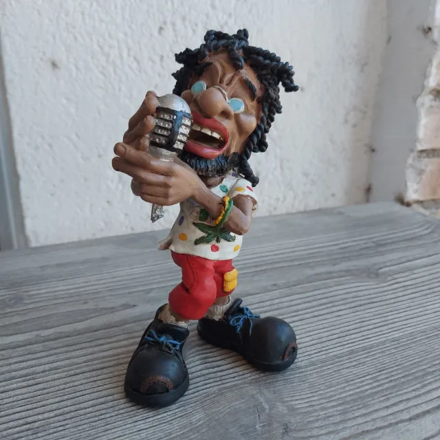 Dettagli del prodottoStatuetta da collezione in stile Rasta che raffigura un cantante. Un pezzo unico per gli appassionati.