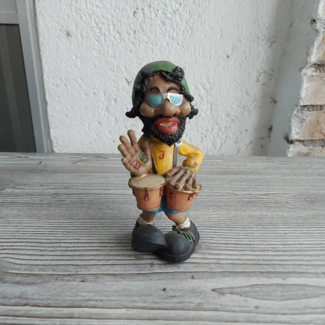 Dettagli del prodottoStatuetta da collezione in stile Rasta, raffigurante un musicista con bonghi.