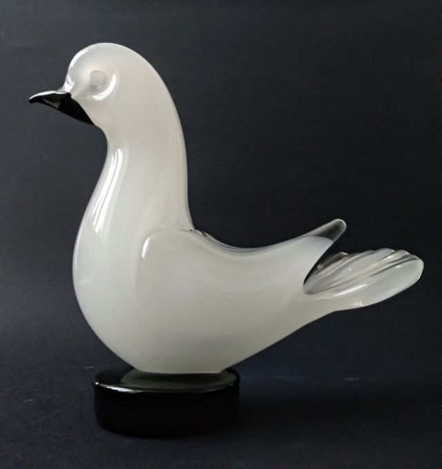 DIMENSIONI: 16x6,5x14 cm MURANO UCCELLINO COLOMBA VETRO OPALINO BIANCO BUONE CONDIZIONI, NESSUNA SBECCATURA