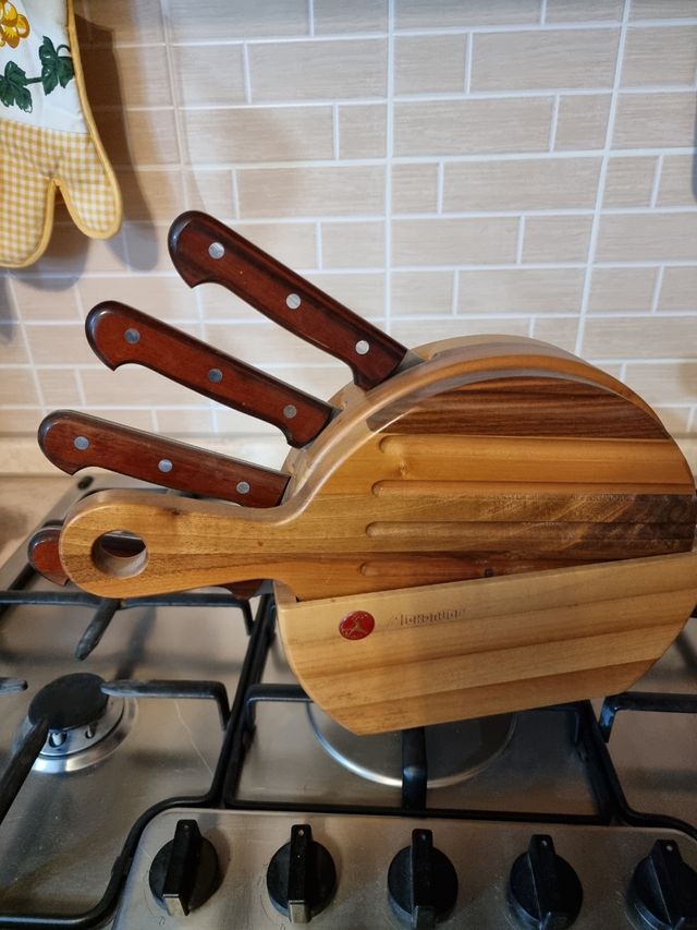 set coltelli con ceppo e tagliere alexander